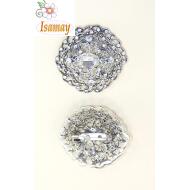 Adornos pelo, complementos de moda y bisutería: Broche roseton plata vieja 1 cristal facetado