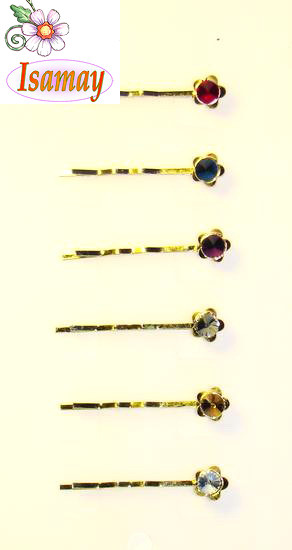 Adornos pelo, complementos de moda y bisutería: Horquilla dorada flor 1 strass colores