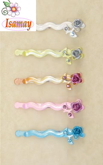 Adornos pelo, complementos de moda y bisutería: Horquilla onda esmalte rosa metal con tallo pastel
