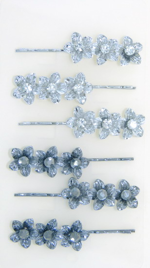 Adornos pelo, complementos de moda y bisutería: Horquilla plata / rhodio 3 flores strass
